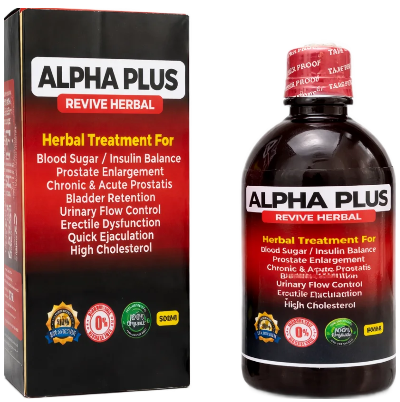Alpha Plus is a carefully formulated herbal liquid designed to support your body from within. It works naturally to restore balance in key organs responsible for efficient body metabolism, prostate health, and urinary function.